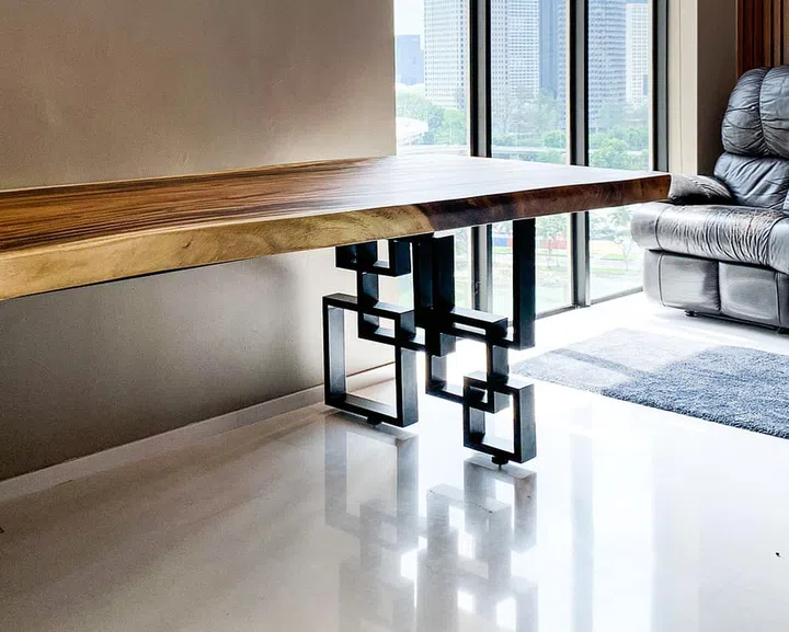 The design of one bed headboard, for instance, was modified accordingly once The Table Guy realised that the client’s original design did not allow them to fit it in without first having to knock down some walls. Slab tables range from $1,600 to $4,000 while commissioned pieces can go up to $10,000, depending on materials and hardware. Prices typically include delivery and installation.