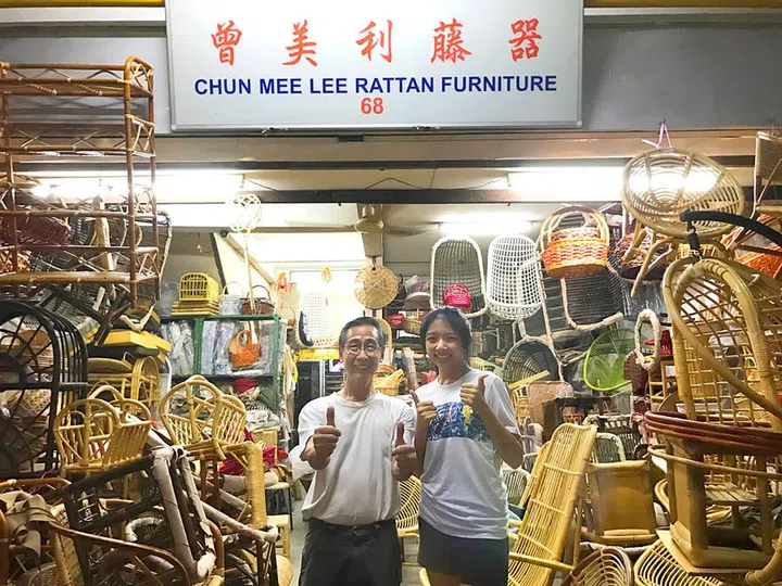 Located at the end of an HDB corridor in Bukit Merah, Chun Mee Lee Rattan Furniture has been making and selling handcrafted rattan chairs, tables, shelves and accessories since the 1920s. It is still run by its founding family, and helmed by 72-year-old rattan furniture craftsman Chen Foon Kee. Besides selling furniture and accepting orders, Chun Mee Lee also restores and repairs vintage rattan furniture.