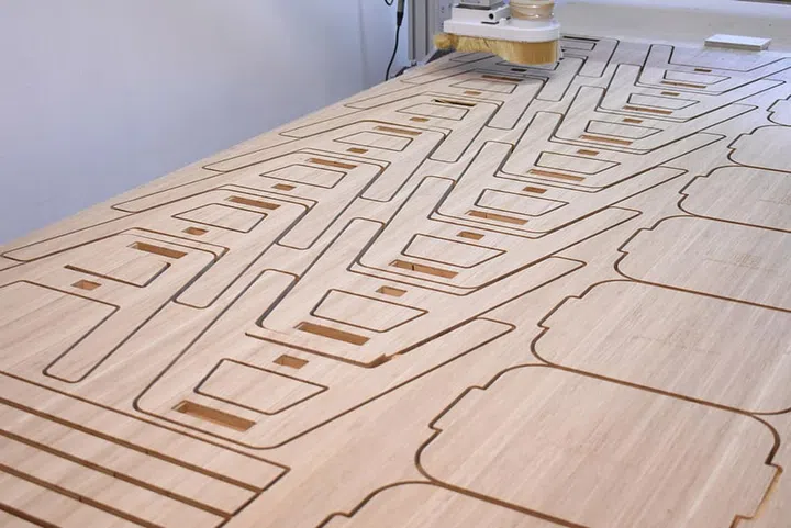 “We try not to use solid wood and contribute to deforestation,” says Kaifeng. These panels have excellent tensile strength and flexibility, and their density and hardness are well suited for CNC machining. These properties have allowed ZFOW to be explorative with its furniture design.