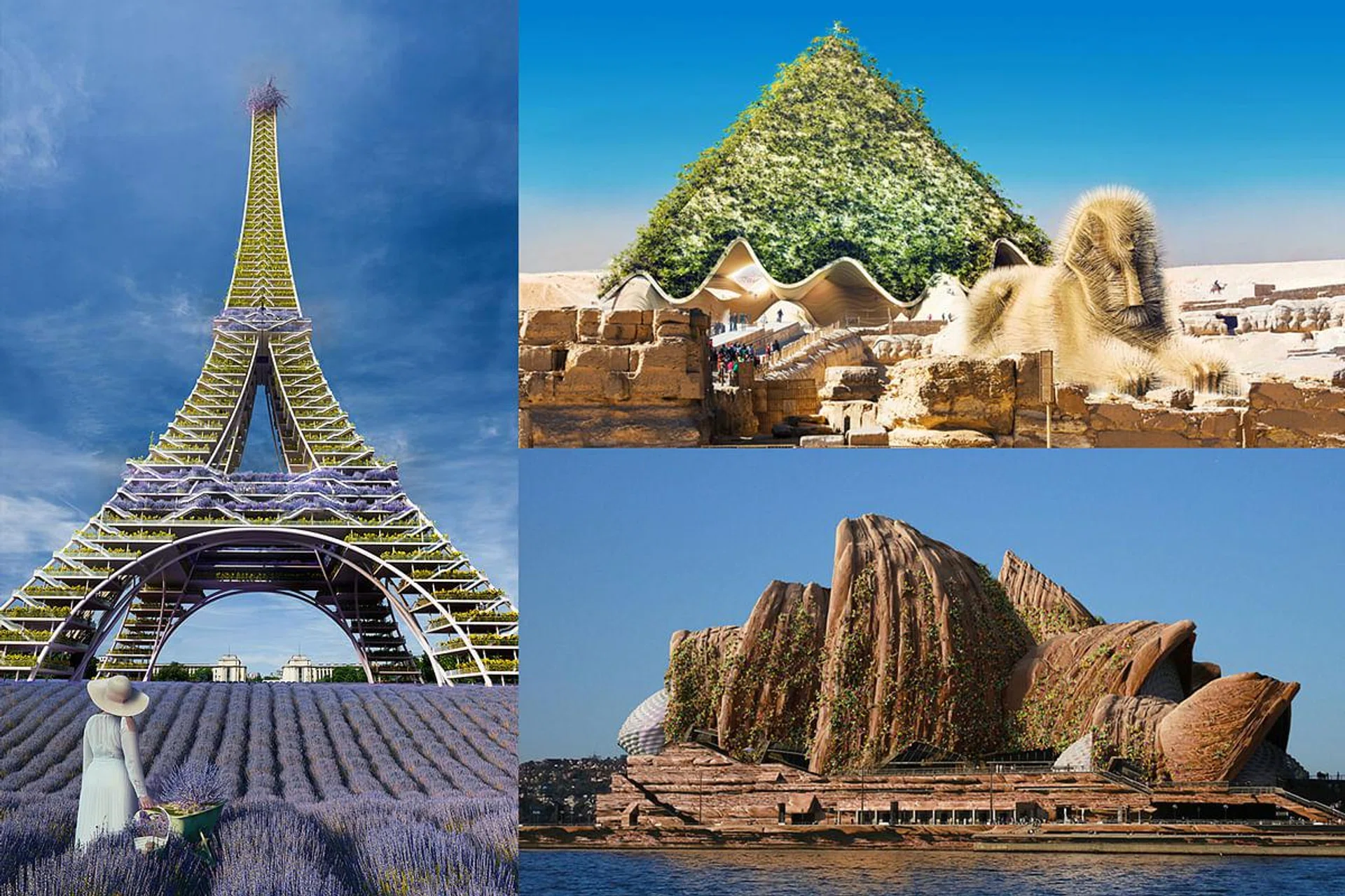 We've got several real ones in Singapore, but it's fun to imagine these landmarks get the biophilic treatment.