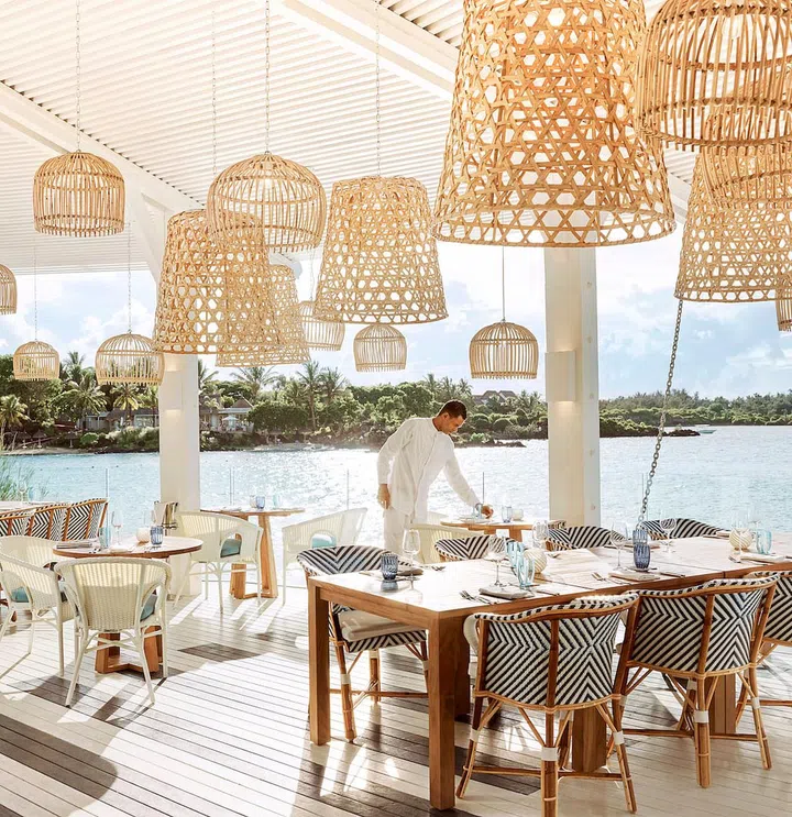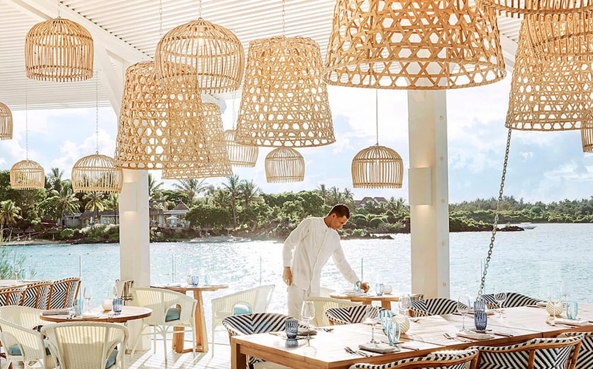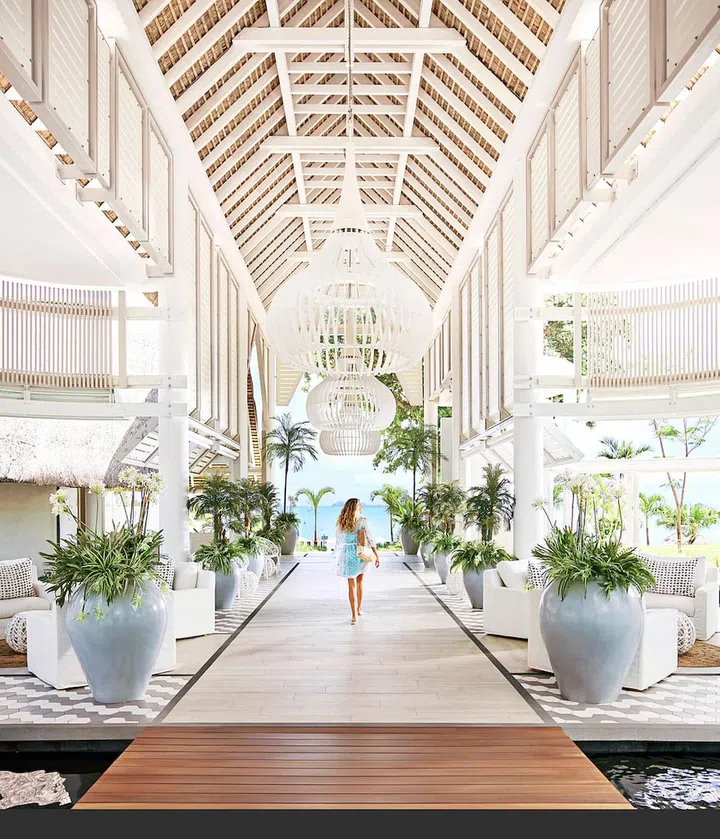 British interior designer Kelly Hoppen gives tribute to Mauritius’s tropical style throughout the spaces of this luxury hotel.