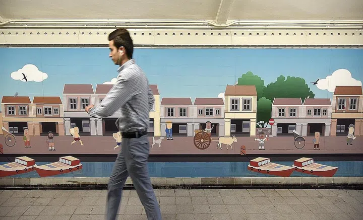 The 27m-long, 2.19m-high murals stretch across the length of the underpass. The Back To The Past mural features the trade activities and transportation that took place against the backdrop of Boat Quay shophouses, such as bullock carts and bumboats carrying goods. The Early Days mural (above) focuses on the people working along the Singapore River, such as rickshaw pullers, merchants and labourers.