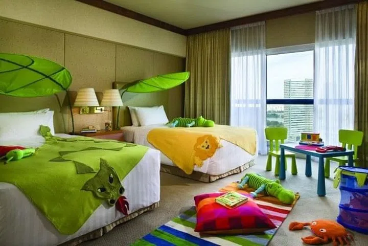Check into a family king room at the child-friendly environment of Festive Hotel. It comes with a king-size bed, a sofa bed and a fun loft bed, designed to make bedtime the highlight of the stay. Cribs are also available on request for babies. In the living area is a large LCD TV offering 28 channels including Cartoon Network and interactive games. The only hotel within Resorts World Sentosa boasting a pool made just for kiddies, you are also just minutes away from attractions like S.E.A. Aquarium and Adventure Cove Waterpark.