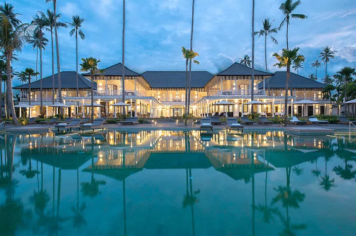 A façade as magisterial as that of the Sanchaya’s two-storey beachfront manor has to be celebrated nightly. In the same way people are awed by the sunset, guests move to the far side of the resort’s Olympic-sized infinity pool, or to the stunning stretch of beach beyond, to gaze back at ‘The Great House’ in all of its splendor as the lights go on. Wall sconces cast uplight and downlight on the exterior walls to create a warm and romantic ambience. The manor’s columns bathed in LED lighting also feature prominently as a different layer in the overall lighting effect.