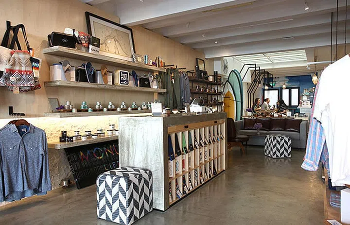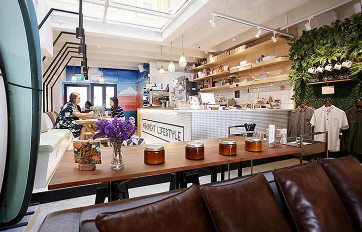 Monument Lifestyle is a cafe and retail space, modelled after Californian boutiques. A couch separates the cafe and retail area at this Duxton Road store.