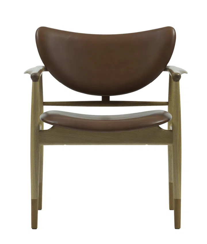 1. Initially presented in 1948, the 48 chair by Finn Juhl is sculptural and delicate. It comes in oak with armrests and feet in teak, or in a version entirely in walnut.