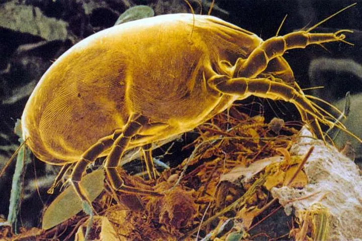 House dust mites are microscopic bugs that primarily live on the dead skin cells that humans and their pets shed. The mites are mostly harmless to people and do not carry diseases, but they and their faeces can cause allergic reactions to humans, especially among asthmatics.