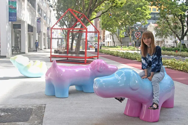 Paddle Pop-coloured dogs, a gable-roofed house with no walls and a roller coaster-inspired loop are among the six quirky benches that brighten the new-look Bencoolen Street.