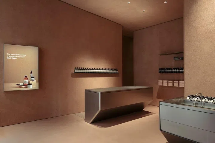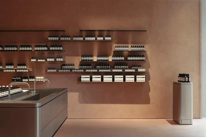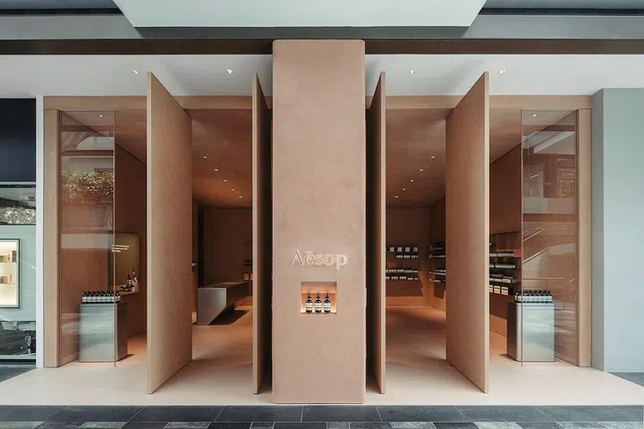 The journey to Australian-based luxury skincare brand Aesop’s newest showroom here begins with a stroll through the wide aisles of Marina Bay Sands’ shopping avenues, followed by a descent of 10m below sea level into the cavernous B2 level of the mall. Not far from the impressive and noisy Rain Oculus by Ned Khan, lies a peaceful refuge away from the throngs of tourists and dizzying array of glitzy fashion brands. Designed in collaboration with local studio Asylum, Aesop’s store in The Shoppes at Marina Bay Sands is touted by the designers as “an earthen outcrop and a meditation on Singapore’s relationship with the land”.