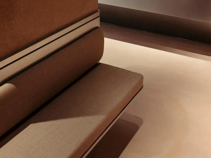 The streamlined appeal and neat angles contrast beautifully with the organic appearance of the wall treatment, creating a poetic display of bold forms juxtaposed with a sensual backdrop. The resulting presentation, enhanced by wafts of a soothing botanical fragrance, is at once inviting and cosy.