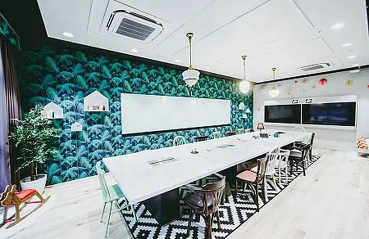 All office meeting rooms are inspired by actual homes on Airbnb, including an apartment in Batignolles, Andy Warhol-inspired art loft in Bangkok, a caravan in Cornwall, and a villa in Kuta.