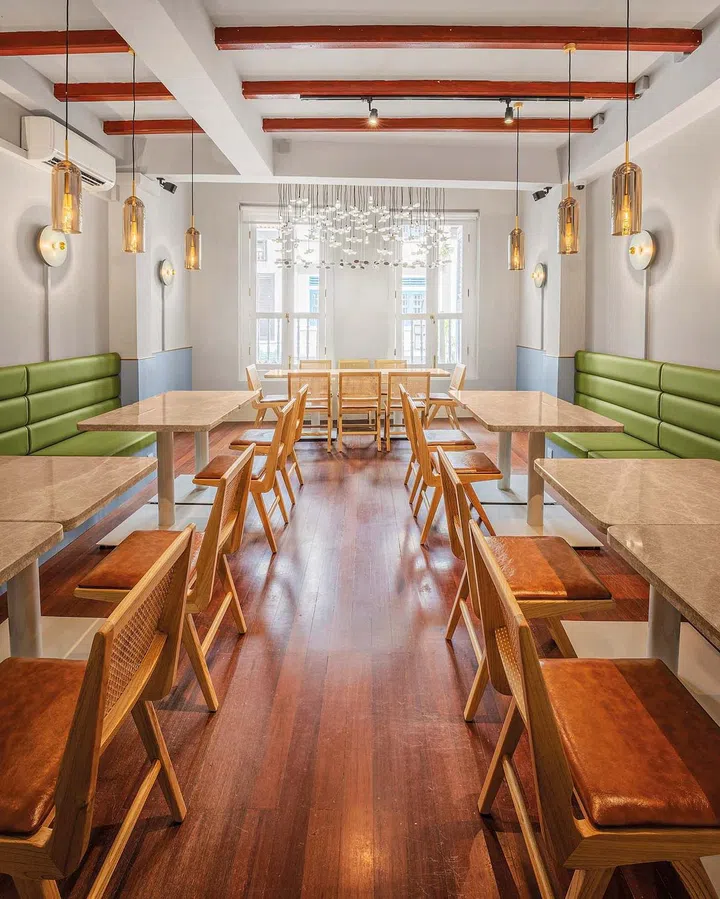 Its second incarnation now sports a whole new look – even the shopfront, whose clean lines and cool neutrals are a marked departure from its predecessor’s colour-blocked windows. From within, warm lights and an equally modern-chic interior beckons diners.