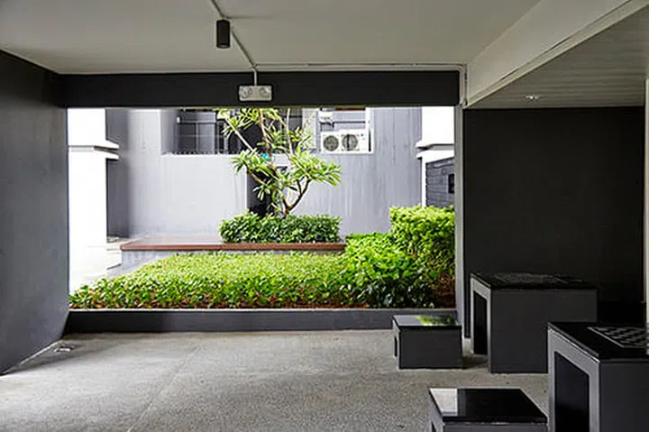 Community living rooms replace the conventional void deck, while serving its purpose of creating space for interaction between residents.
