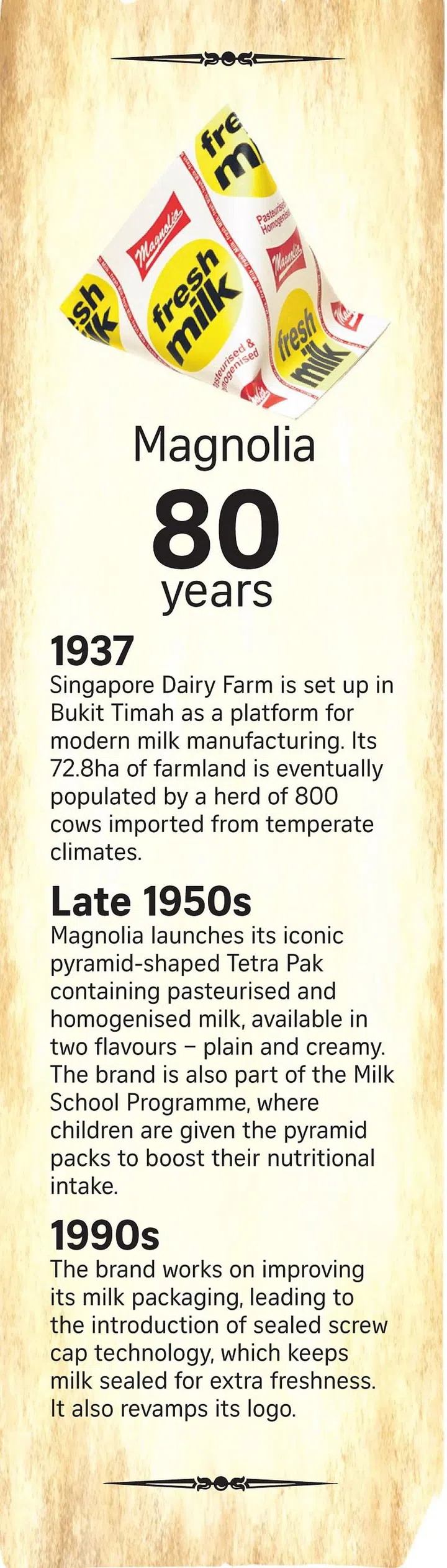 On the brand's longevity, Ms Jennifer See, general manager of F&N Foods, which owns Magnolia, says: "We continue to leverage on our research and development and production capabilities to offer milk that many Singaporeans across generations have grown to trust.
