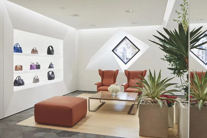 The ground level features women’s leather goods and eyewear. A women’s shoe salon, a dedicated space for women’s bags and personalisation services are located on the second floor.