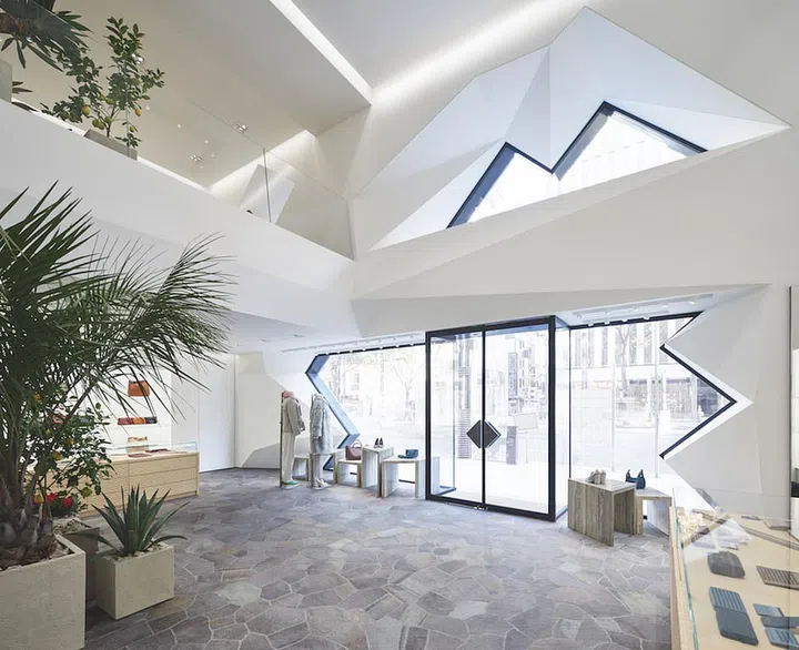Spread over six floors, the 800 sq m flagship is nestled in a sleek structure inspired by Tokyo’s futuristic spirit and Modernist architecture.