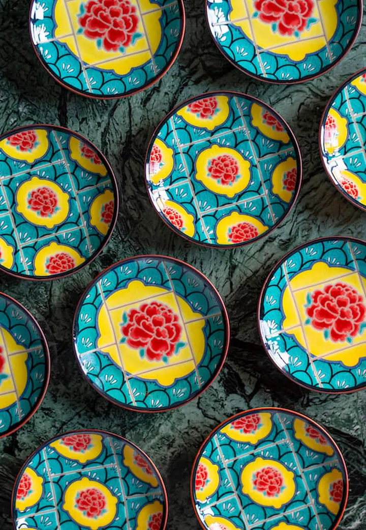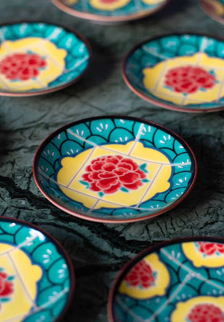 The pair of Peranakan Mamazara — which means "small plate" in Japanese — are made in crafts facilities in Japan and remind of Kutani-yaki, a traditional Ishikawa pottery-making style that employs the use of colourful glaze and bold patterns.