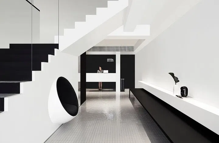 Designed by William Chan of Spacedge Designs to have an overarching minimalist theme with an uncomplicated black and white colour palette, the hotel’s interiors are restful and understatedly chic. The materials used may be inexpensive and humble, says the designer, but a lot of thought went into applying them to “bring out something special in a simple way”. The design language starts in the lobby. Upon stepping in, the long and narrow space is free of loose furniture, and instead, a bench made of solid surface and a wall-mounted spherical seat flank the way to the cantilevered T-shape reception counter. William tells that the distinctive seat — a focal point in the lobby — was a chair that was modified and specially built into the partition under the staircase, which is only accessible to guests.