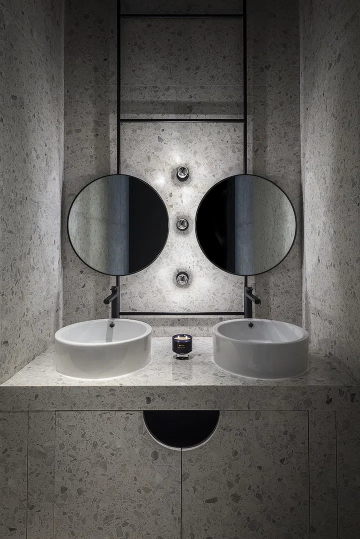 Even the bathrooms reflect the glamourous tone of the dining experience in Alto, using terrazzo stone which embody the earth and Alto's mountainous geographical location.