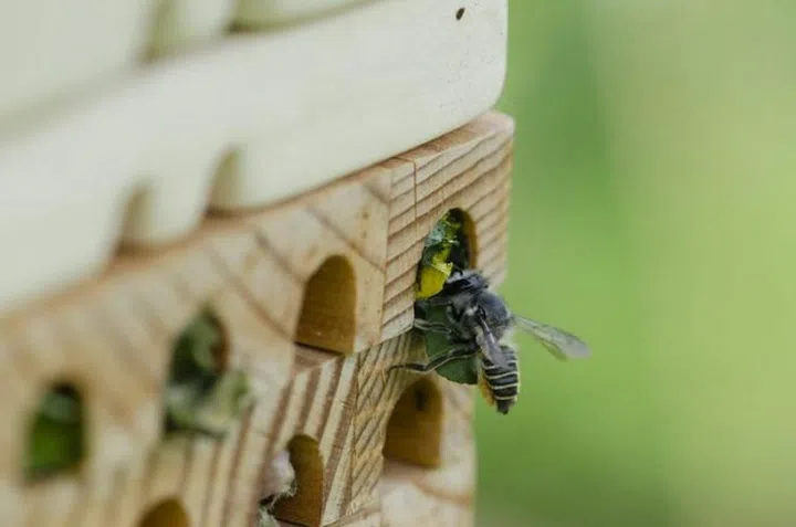 The solitary bees can get a drink of water easily, thanks to Refugio's bee structures. (Photos: Gabriel Calvillo, Sergio Lopez)
