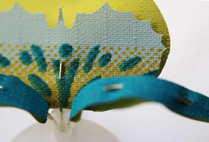 Screen-printed polyester petals feature a vessel at the centre to collect rain, which is linked to a hollow stem containing sugar. The mixed solution is then automatically pumped back up.
