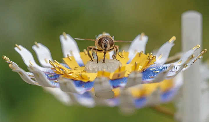 Dutch designer Matilde Boelhouwer has designed artificial flowers for city-dwelling bees who may otherwise starve. The Food for Buzz project comprises five blooms to draw the “big five” of pollination – bees, bumblebees, hoverflies, butterflies and moths.