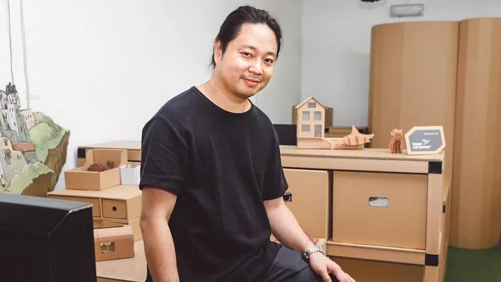 Adrian Chua uses cardboard to build sculpture and furniture. PHOTO: YEN MING JIIN