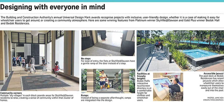 "Universal design is about addressing the needs of as many people as possible, including those with disabilities and the elderly," said Mr Teo Orh Hai, the BCA's acting group director for building plan and management.
