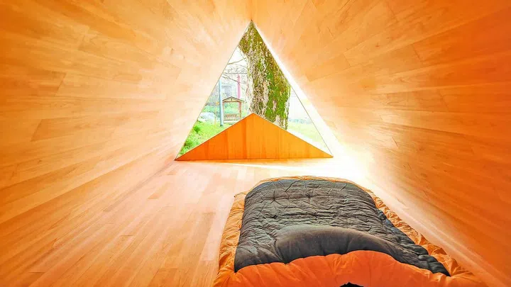 The house was designed by Japanese architect Go Hasegawa and built using cedar wood from the forests in Nara prefecture, home to Japan's most famous cedar trees. Everything in the house is locally sourced, from the wood to the upholstery, drawing on the heritage and expertise of the local community. The house will be maintained by the village and proceeds earned from the guests go to them as well.