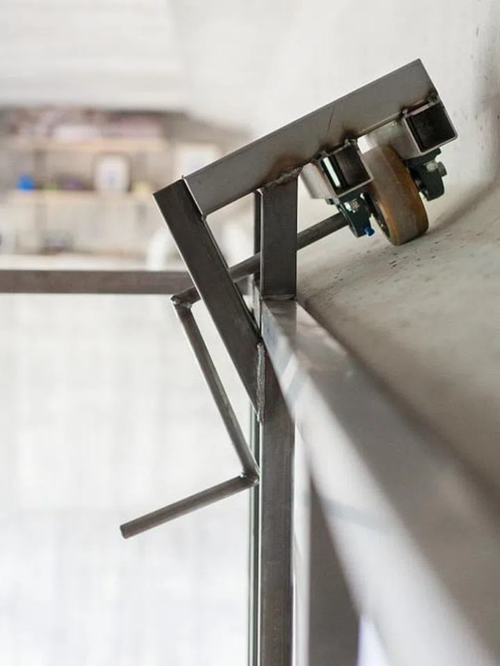 The secret study is supported by beams that are connected to a crank, which can move the entire platform to the middle underneath the highway and away from trespassers.