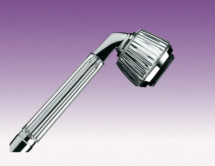 The Selecta hand-held showerhead is a true classic, both in form and function. Its Plexiglas handle is a refreshing look against the chrome plating