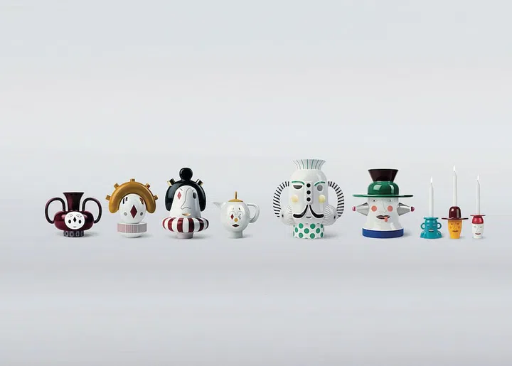 Pictured is Jaime Hayon’s theatrical, playful Theatre Hayon collection of candleholders, vases and teapots in coloured glaze for Bosa. It features a series of flamboyant characters with funny facial expressions that are sure to liven up your living spaces.