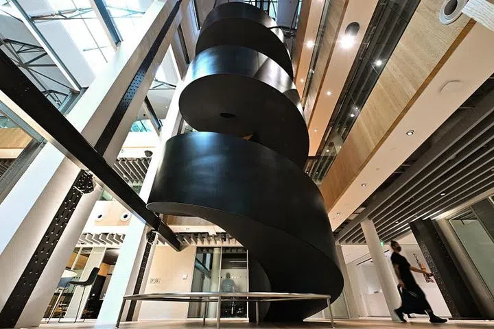 One prominent architectural feature is a spiral staircase, described by founder Sir James Dyson as resembling a cyclone. Dyson says its office was designed to use minimal embodied carbon, and harnesses sustainable, recycled and environmentally-friendly materials instead.