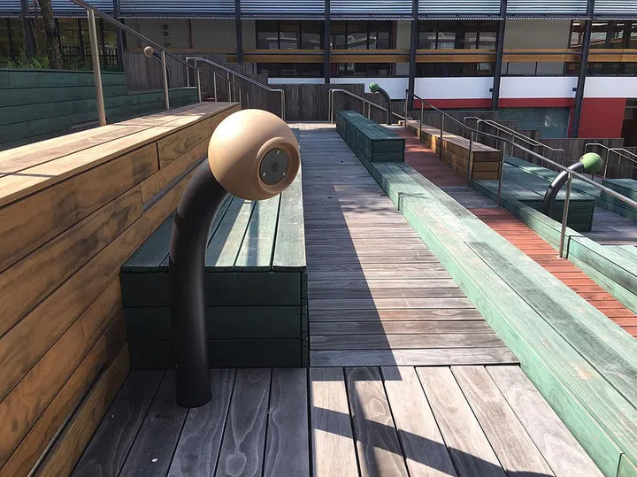 These fun features allow communication between users at different areas of the amphitheatre, as sound travels from one tube to another.