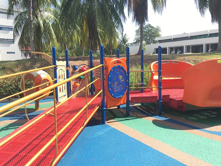 The playground too, is user-friendly for the physically-disabled, built with a ramp and a wide 'see-saw'.