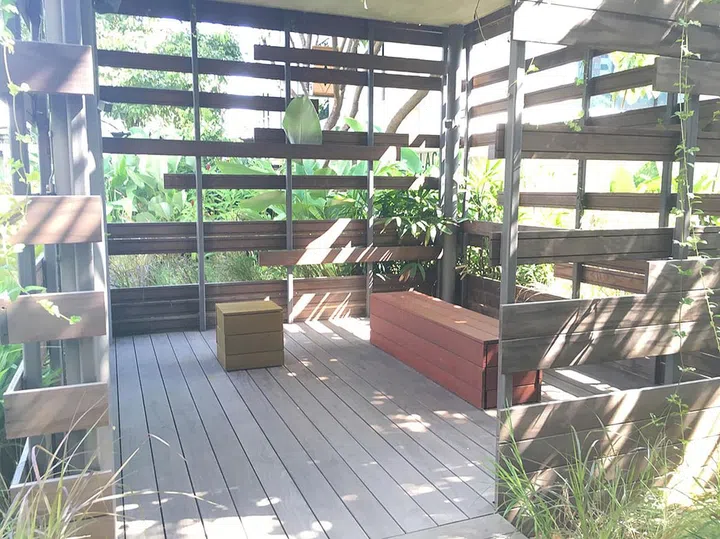 Sheltered spaces designed with the use of repurposed sea containers litter the spaces around Hive, a centre for training and customised employment opportunities for persons with autism, operated by ARC.