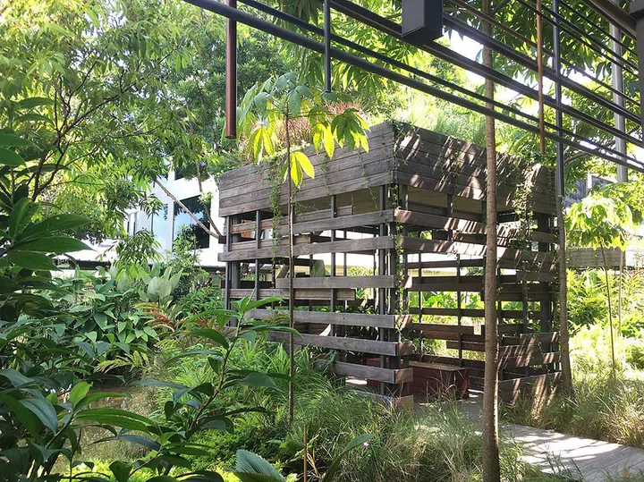 Architecture firm Woha, in collaboration with landscape architect Salad Dressing, decked the space with lots of greenery and created water gardens with a variety of plants!