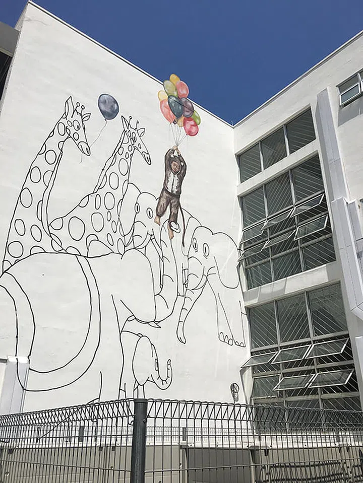 Throughout the compound, wall murals are spotted, such as Penang-based artist Ernest Zacharevic's mural here, inspired by the work of special artist Tan Jun-Yi.