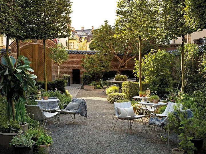 The common areas are organised around the kitchen that’s furnished with large dining tables and seating areas that invite guests to sit and chill as if they were staying with friends. With its floor- to-ceiling Vitsoe 606 shelving system by Dieter Rams, the library is a booklovers’ paradise. Also, the glazed conservatory and courtyard garden help one connect with nature in the city. In addition to the 12 cosy rooms – ranging from 20 to 54 sq m in size – the hotel has a gym, a traditional Swedish sauna and a hot stone slab.