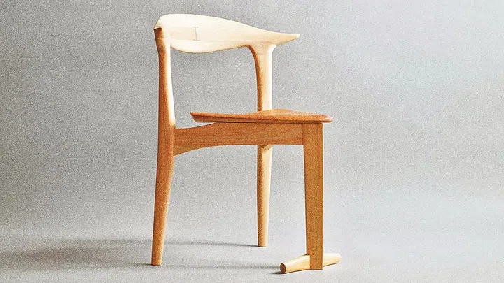 Takuma Fujikawa followed in his father’s footsteps to become an experienced craftsman. His studio Izuru makes only chairs in solid cedar and cypress wood. Unlike most chairs which have four legs, the Izuru 09 has only three. The front leg has an extra support that acts as a footrest and stabilises the chair. Its triangular seat and semicircle backrest make it extra comfortable to sit on.