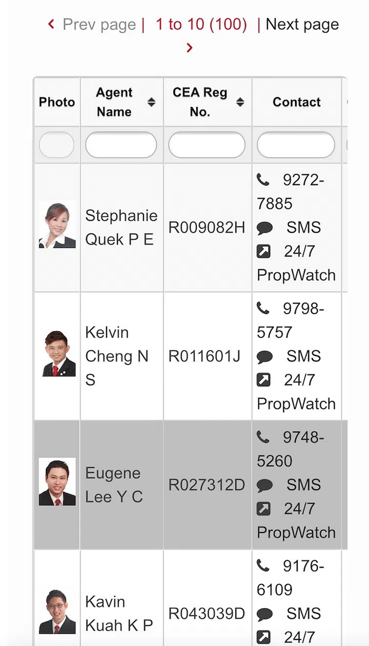 You can search for an agent based on their particulars (name and mobile number, if it is available to you), or by their speciality (property type or district)