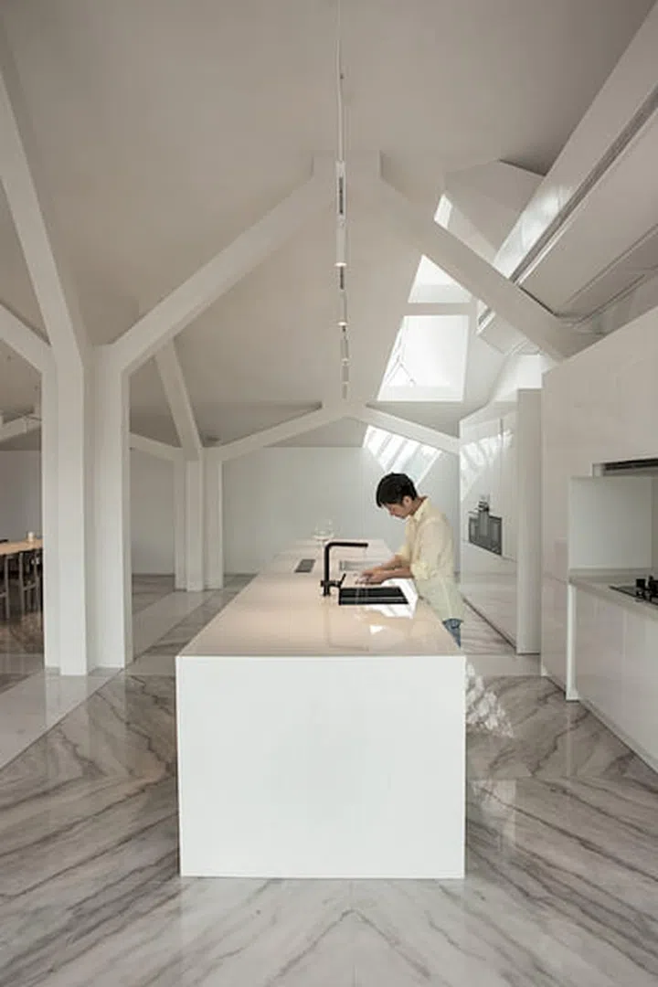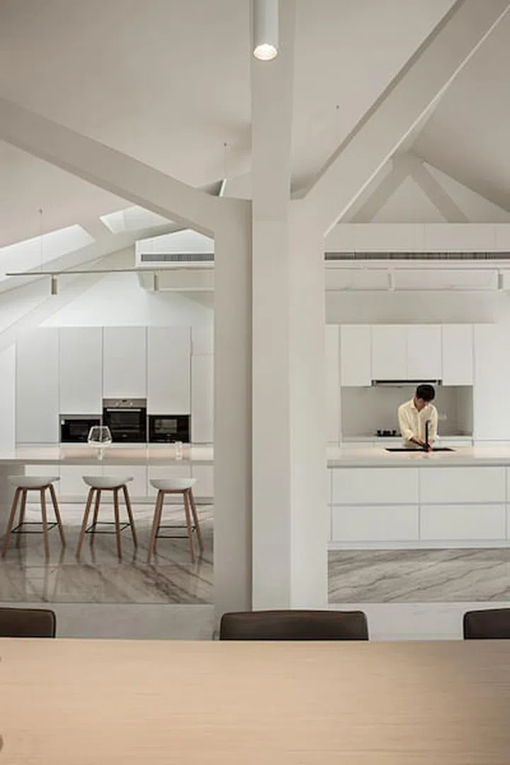 “I chose white as the main colour for its lightness and purity, and the fact that it allows Gatehall to stand out among the other buildings,” shares Ma.