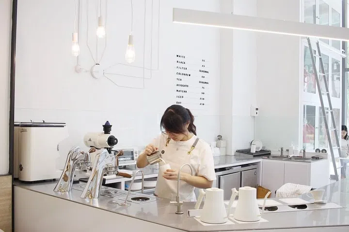 The fuss-free interior also allows the team to focus on its first love, coffee, and the people who drink it. Instead of traditional coffee machines, the cafe features a sleek under-the-counter Modbar espresso machine.