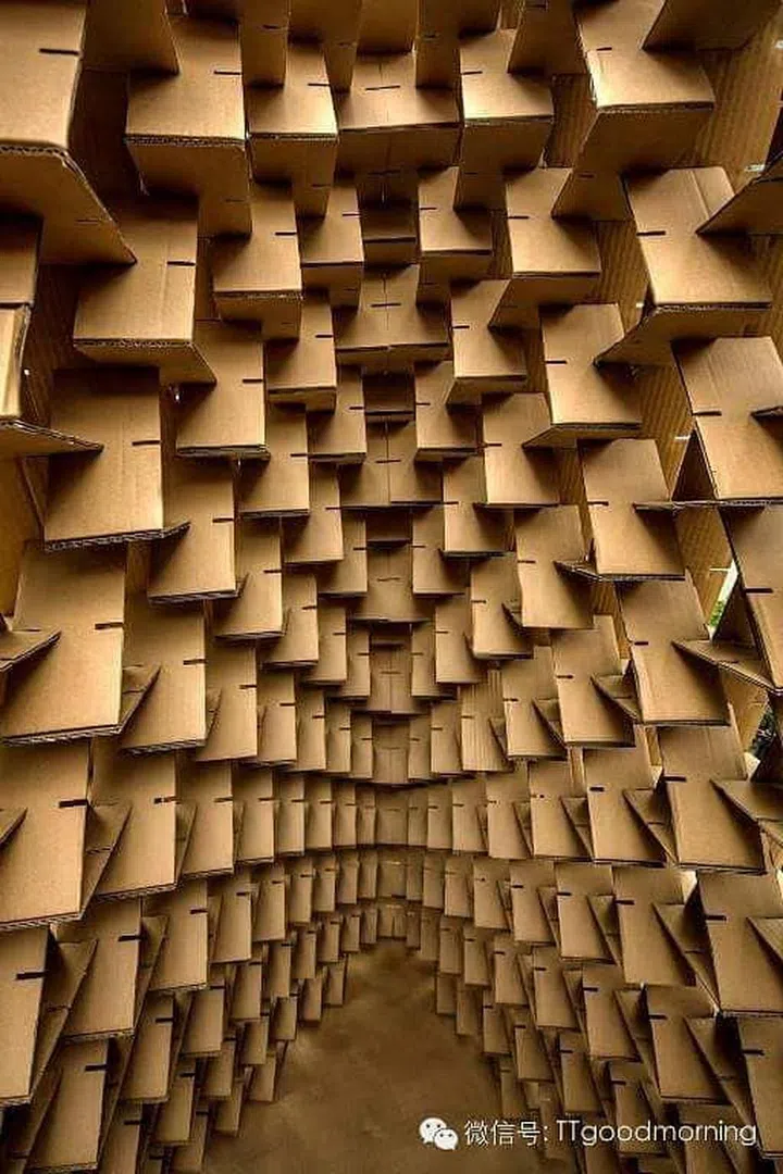 They even created circular structures, simply be using a criss-cross method of arranging the cardboard pieces.