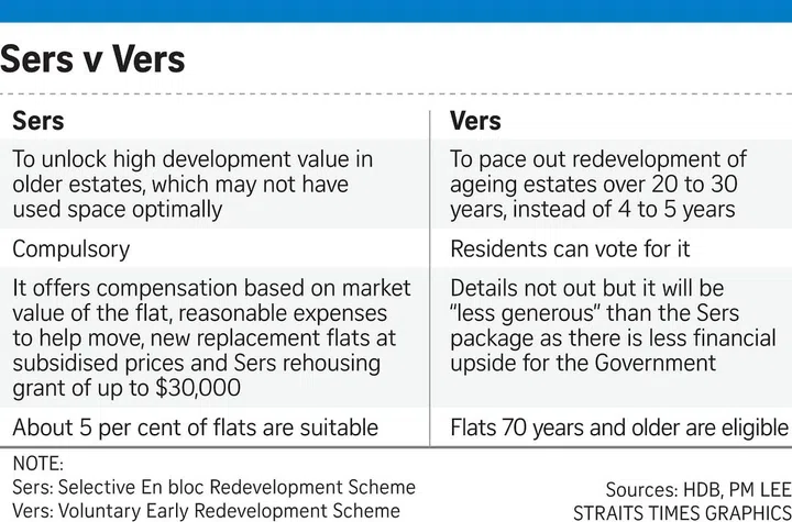 Under the new Voluntary Early Redevelopment Scheme (Vers), owners in flats aged 70 years and older can vote for the Government to buy back their homes before their leases run out, if their precinct is selected for Vers.