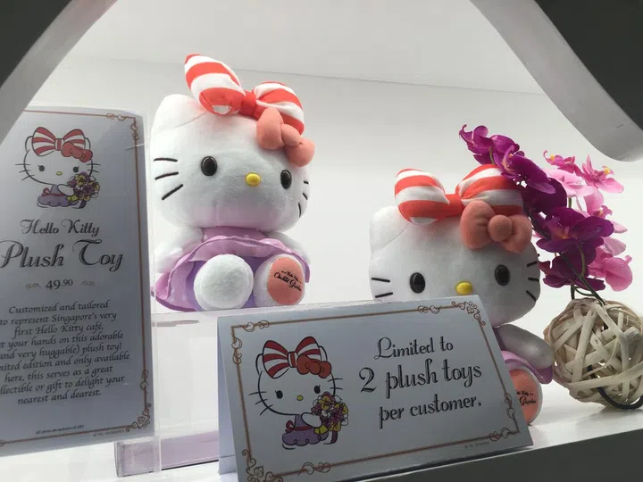 This current range of Hello Kitty plushies ($49.50 each) are limited edition — there are only 500 — and are limited to two per person. And what's so special? It's the only Kitty with two bows in the world! Hurry, you might already be too late to grab one!
