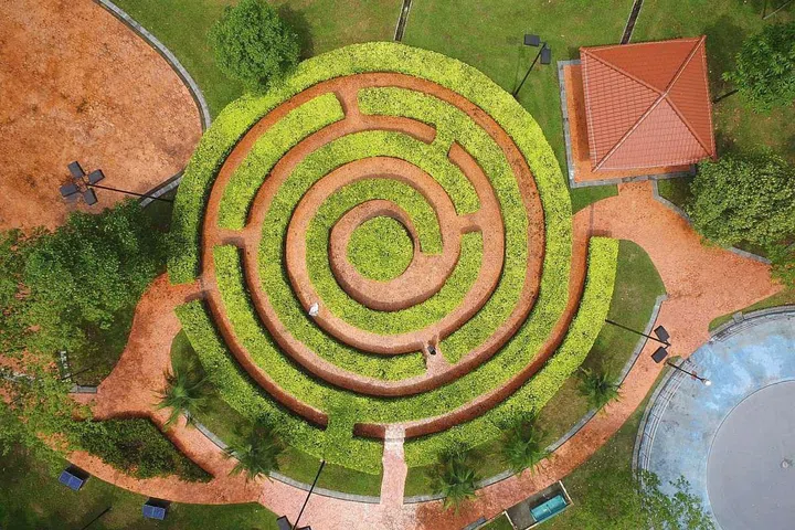 Resembling a mosquito coil, Bishan Harmony Park's hedge maze was constructed in 2009. It is located at the junction of Bishan Road and Braddell Road.