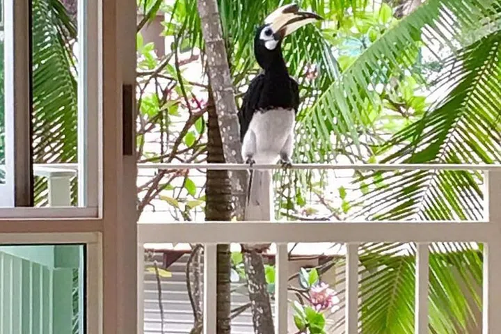 Attracted to the fruit from the estate's palm trees, residents at Country Park Condominium have been treated to the sight of oriental pied hornbills since the start of the year. Easily identified by their size, distinctive yellow horn-topped beaks, and black and white plumage, the native Singapore birds were once thought to be extinct. There are now about 100 all over the island. If you are lucky enough to see them, do not get too close and definitely do not feed them. "By not feeding them, we can ensure they continue to disperse seeds and help with forest regeneration," says Dr Lena Chan, group director of the National Biodiversity Centre of the National Parks Board (NParks).