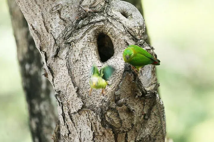 Sometime in early April, a nest of blue-crowned hanging parrots were sighted near Pek Kio Market and Food Centre. Apart from the adults, chicks were also spotted in the nest. It is believed that the nest was left by other birds such as woodpeckers as parrots cannot make their own holes to nest in.