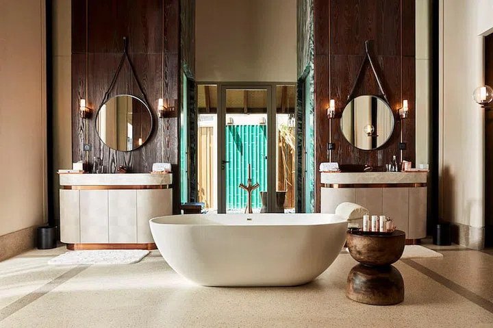 To view his underwater coral sculptures, American designer Misha Kahn invites guests to dive down and swim in between the pieces created with vibrantand pale-coloured mosaic tiles, good to know Joali is one of the first art resorts in the Maldives, and features 73 private beach and water villas, as well as residences. which reflect the coral bleaching occurring in the ocean. “I have drawn the inspiration from the waters around us,” he says. “Coral is a delicate symbiotic system, just like art is with colour and form.”